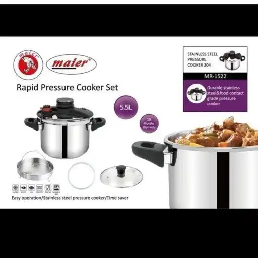 زودپز مایر مدل MR-1522 با ظرفیت 5.5 لیتر، انتخابی ایدهآل برای خانوادههای متوسط و کوچک است. این ظرفیت به شما امکان میدهد تا حجم مناسبی از غذا را در هر بار استفاده آماده کنید. جنس بدنه این زودپز از استیل ضد زنگ است که نه تنها ظاهری زیبا و مدرن به آن میبخشد، بلکه دوام و مقاومت بالایی در برابر ضربه و حرارت دارد. استیل ضد زنگ همچنین از ایجاد لکه و زنگزدگی جلوگیری کرده و نگهداری و تمیز کردن آن را بسیار آسان میسازد.